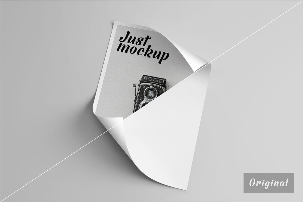 Create an elegant looking presentation with this mockup. just double click smart object - replace design - save. You can also change the back color of the paper. only took a few seconds for your design look realistic.